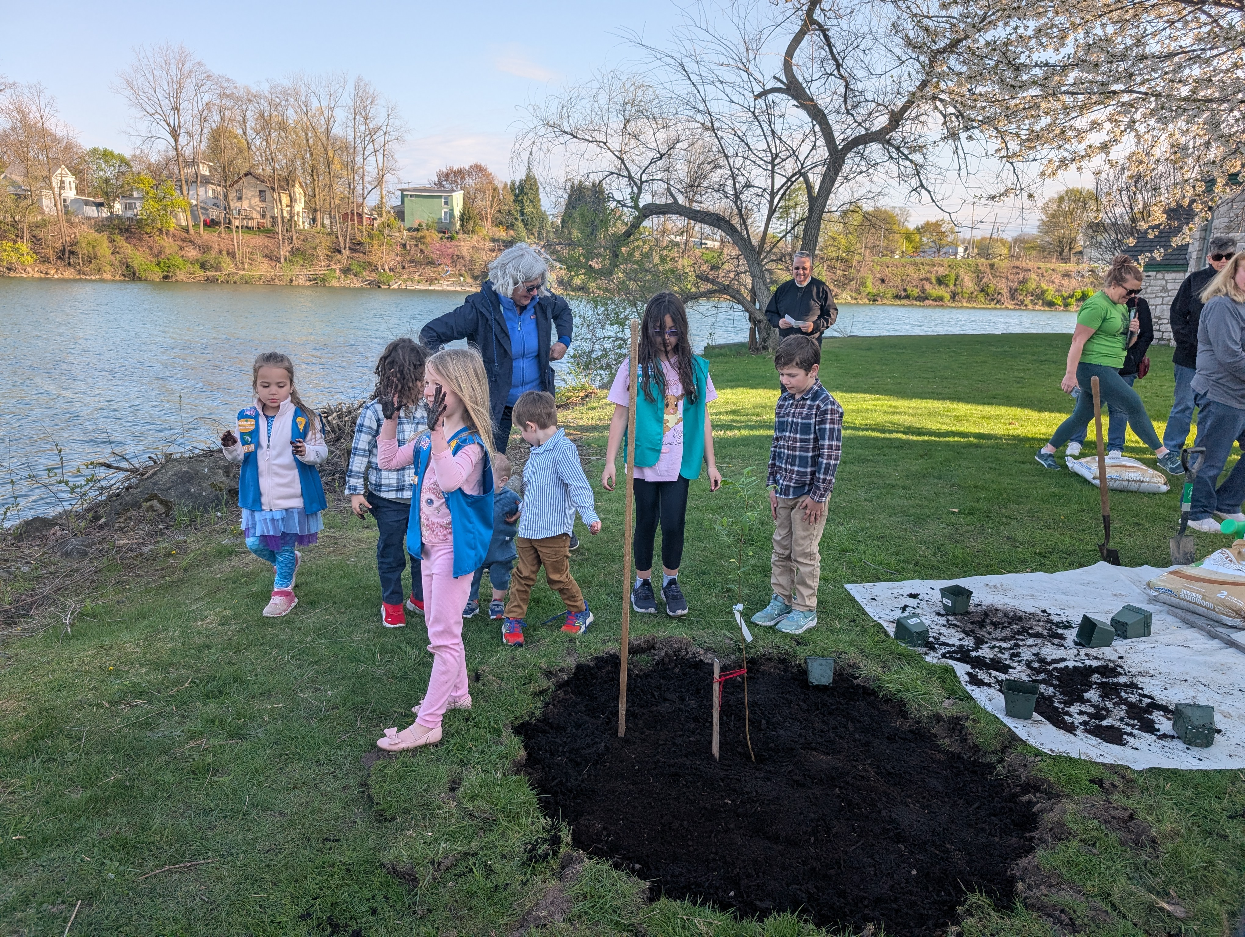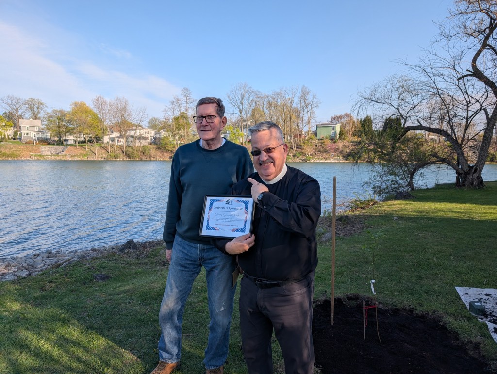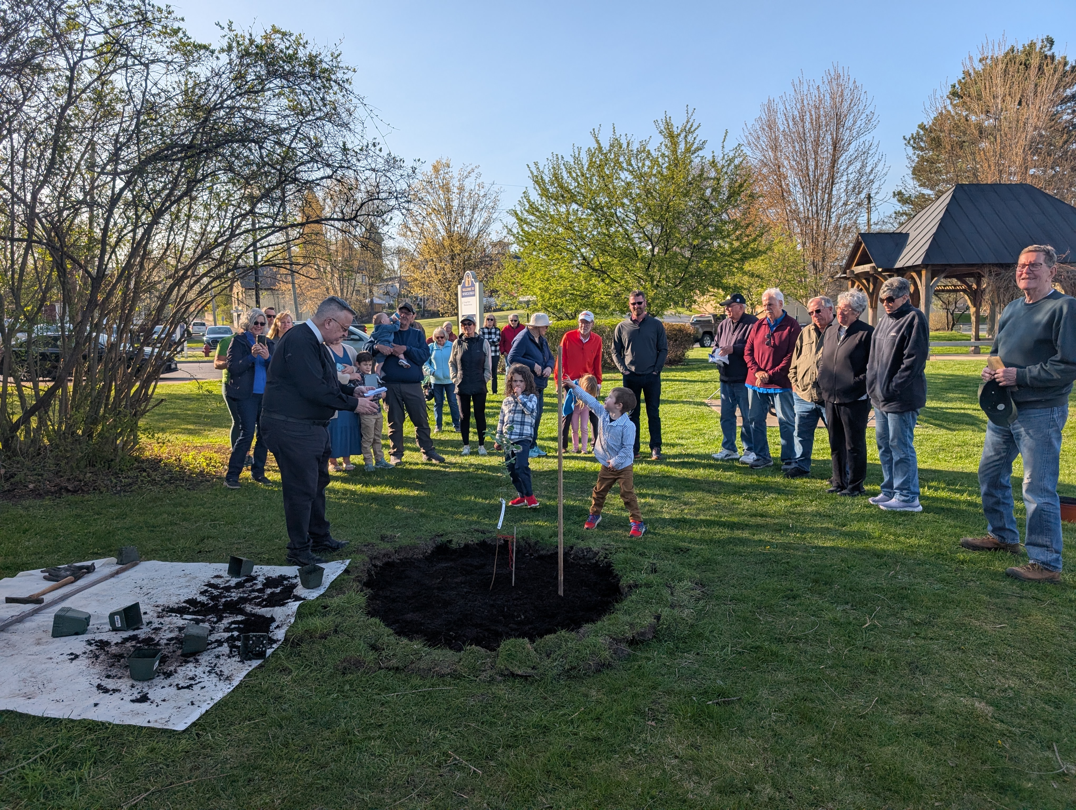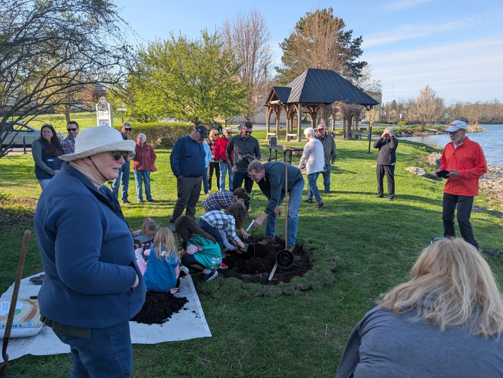 An Arbor Day tree planting! Members of Trinity, the Seneca County Cornell Cooperative Extension, and the community gathered this afternoon to plant an American Elm Survivor Tree on the shore of Van Cleef Lake. This tree is an offspring of the lone surviving tree from the Oklahoma City bombing. Making the world a greener place!