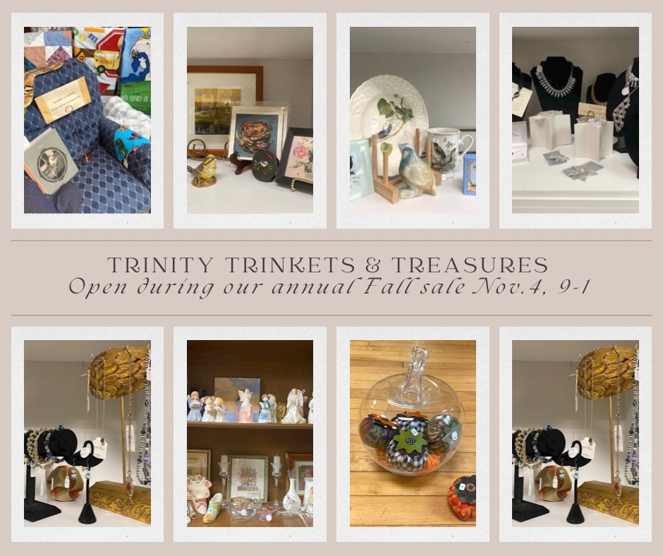 If you are visiting Seneca Falls for the It’s a Wonderful Life weekend many of the programmed events are at Trinity! Through the weekend our wonderful gift shop, Trinity Trinkets and Treasures, will be open. Many great gift items, jewerly and much more.